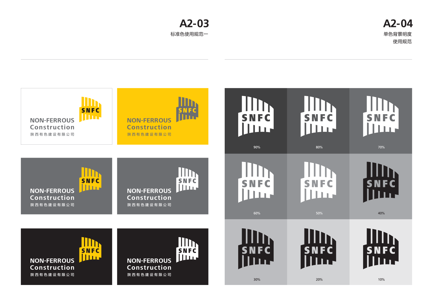 標識釋義: 陜西有色建設有限公司成立于2004年,是一家綜合性的建筑企業(yè),先后承接了一批在全國建筑市場有影響的工程項目,并將大型工礦建設作為企業(yè)的發(fā)展目標,業(yè)已成為陜西建筑市場中的強勁生力軍。 品牌標識設計正是從企業(yè)實際狀況和遠景規(guī)劃中提煉而來,通過抽象的圖形和圖文結(jié)合的表現(xiàn)手法,體現(xiàn)了企業(yè)國際化的戰(zhàn)略眼光。 1、標識以圖文結(jié)合的方式突顯企業(yè)英文簡稱 “SNFC”; 2、標識形似拔地而起的高大建筑群落,傳達企業(yè)特色的同時充分體現(xiàn)了企業(yè)強勁的競爭力; 3、標識形似飄揚的旗幟,寓意企業(yè)力求成為建筑行業(yè)中的一面旗幟和楷模,以及為行業(yè)樹立新標桿的勃勃雄心; 4、標識又似大型建筑機械施工中留下的痕跡,體現(xiàn)了企業(yè)雄厚的技術實力,也表達了遠期大型工礦建設的發(fā)展規(guī)劃; 5、標識采用明快的黃色,與傳統(tǒng)建筑企業(yè)相區(qū)別,同時樹立起一個現(xiàn)代、高效、獨特的品牌形象,便于大眾的識別和記憶。 | 03 企業(yè)理念 塑造品牌 客戶至上 竭誠服務 | 04企業(yè)愿景 行業(yè)領先 國內(nèi)一流 客戶首選 |