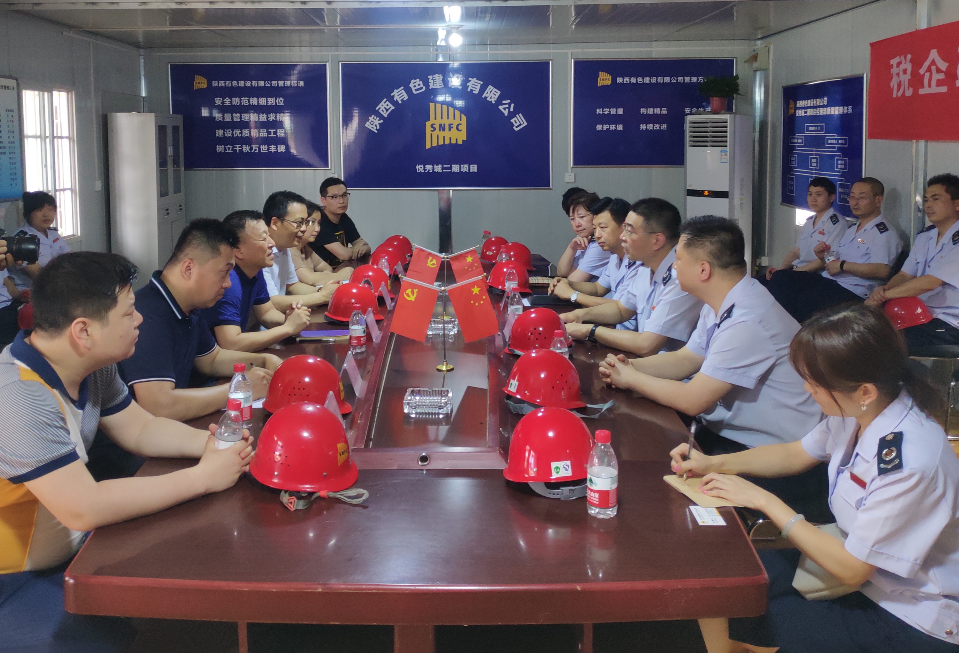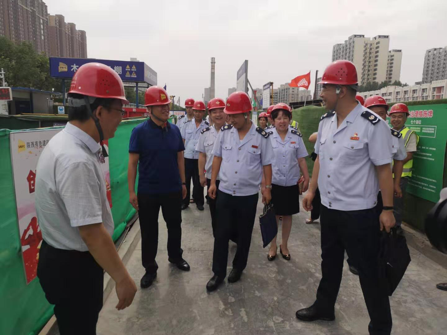 近日,西安市稅務(wù)局第二稽查局和我公司在西安鵬潤悅秀城二期2.1標段項目部聯(lián)合舉行以“稅企聯(lián)動、掃黑除惡”為主題的宣傳活動,西安市稅務(wù)局第二稽查局副局長宋曉軍、公司總經(jīng)理楊明鈺、總會計師陳毓等兩家單位有關(guān)領(lǐng)導及項目施工管理人員參加了本次活動。