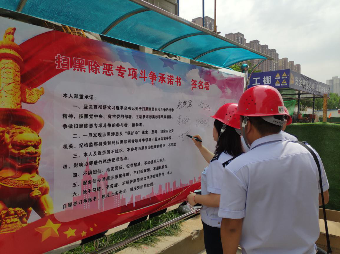 此次宣傳活動是為了進一步落實習近平總書記關(guān)于開展掃黑除惡專項斗爭的重要指示精神,針對當前建筑業(yè)掃黑除惡新動向,全面開展專項治理,不斷推進“掃黑除惡”專項斗爭工作向縱深開展。宋曉軍副局長帶領(lǐng)稽查局工作人員對西安鵬潤悅秀城二期2.1標段項目現(xiàn)場施工管理人員進行宣講,并通過懸掛標語條幅、發(fā)放宣傳手冊、法治宣講、承諾公示牌簽字等方式,把中央和省市關(guān)于掃黑除惡的文件精神、相關(guān)法律法規(guī)及政策帶進施工現(xiàn)場,不斷提高現(xiàn)場施工管理人員對掃黑除惡專項斗爭的知曉率,積極營造全民參與掃黑除惡的濃厚氛圍。