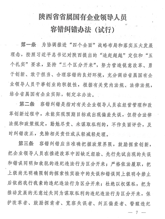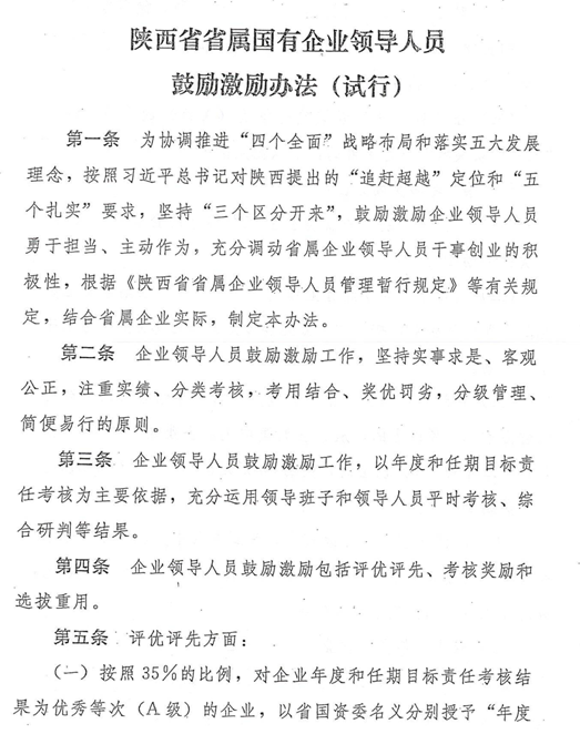 陜西省省屬國有企業(yè)領導人員鼓勵激勵、容錯糾錯、能上能下辦法