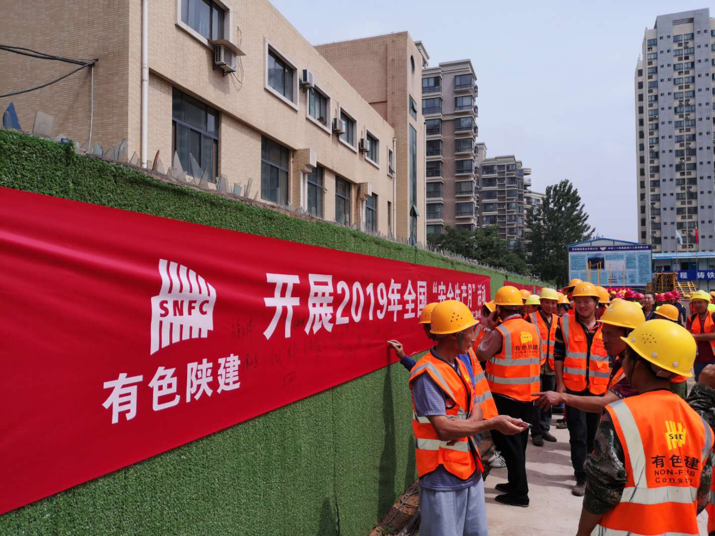6月6日上午十點,悅秀城二期項目“安全生產(chǎn)月”啟動儀式正式開始,西安鵬潤置業(yè)有限公司副總王衛(wèi)武、監(jiān)理單位總監(jiān)理工程師曹恩黨、公司安全環(huán)保經(jīng)理吳鑫和項目經(jīng)理孫杰分別對本次活動及安全生產(chǎn)月工作作了動員和安排部署。項目部安全主管帶領(lǐng)項目全體人員進行安全宣誓及安全承諾簽字。
