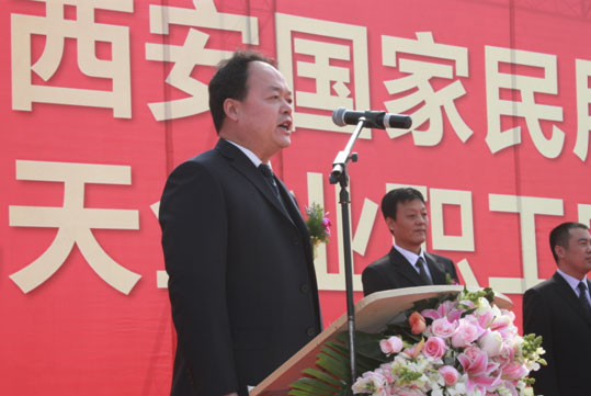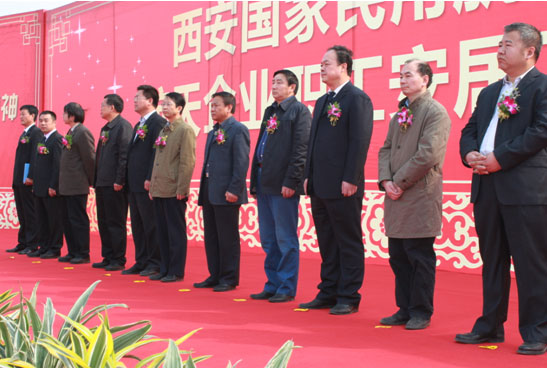 該工程總承包單位陜西有色建設(shè)有限公司董事長劉俊青在儀式上講話。他鄭重承諾,公司將把該工程作為公司的重點信譽工程,嚴格按照圖紙設(shè)計要求組織施工,選派公司精干團隊,確保工程質(zhì)量、工期和施工安全,保質(zhì)保量完成各項施工任務(wù),讓社會滿意、讓建設(shè)單位滿意、讓開發(fā)商滿意。最后,由西安國家民用航天產(chǎn)業(yè)基地管委會副主任李巖宣布項目奠基開工,并與參加儀式的諸位領(lǐng)導(dǎo)為項目奠基培土。